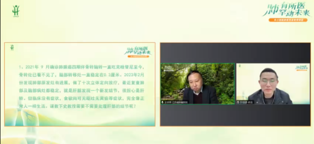 在线答疑环节,患者积极提问。是否需要处理肝部的结节?对于ALK融合和EGFR双突变,是否需要单独吃一种靶向?什么情况下需要换用其他靶向药?降低剂量会不会影响疗效?史美祺教授对患者的问题进行了一一解答。