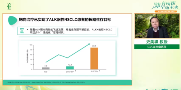 史美祺教授指出,随着ALK靶向药物的飞速发展,患者生存期不断延长,ALK+晚期NSCLC现已步入“慢病化”管理时代,ALK-TKIs已成为国内外指南推荐的治疗首选。