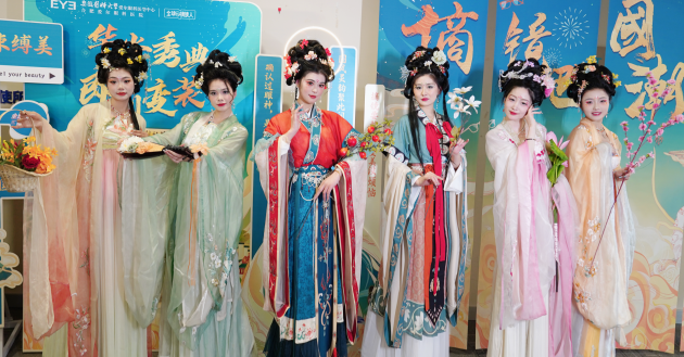 活动现场,多位国潮红人豪华助阵,演绎穿越千年汉服之美。同时,还有古风变装、国潮歌舞大赏、沉浸互动游戏和福利摘镜等,让参会青年畅游国潮风,快乐满载。