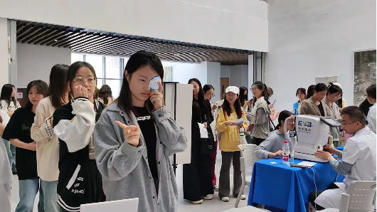 本次公益活动持续全天,既有公益眼健康体检,也有专家科普讲座。在体检区,合肥爱尔眼科医院医护人员细心为师生们提供视力检查、电脑验光、眼表裂隙灯检查、眼底检查以及干眼熏蒸体验和眼镜清洗等,并悉心接待每一位前来咨询问诊的师生,认真聆听其出现的眼部症状、询问用眼习惯。