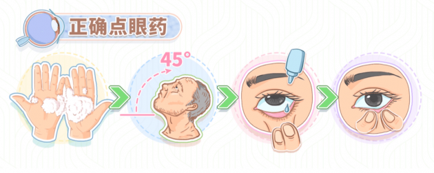 头部稍稍后仰,一手拿眼药水瓶,另一手轻轻向下牵拉开下眼睑,将药水缓慢滴入下方结膜囊穹窿部。