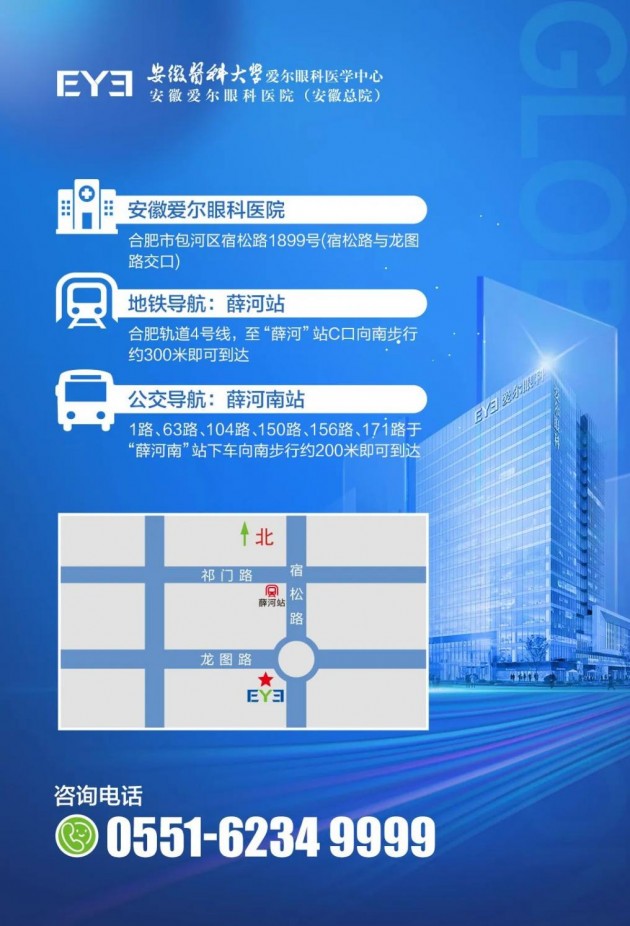 安徽爱尔眼科医院是经安徽省卫健委批准设立的一所集医疗、教学、科研等为一体的三级眼科专科医院。目前开设有屈光手术专科、视光专科、斜弱视与小儿眼科、白内障/青光眼专科、眼底病专科、角膜及眼表专科、泪道病与眼整形专科等多个覆盖全生命周期的眼科亚专科,并开设青少年近视防控、高度近视、糖尿病眼病、干眼诊疗、老视诊疗等特色门诊。