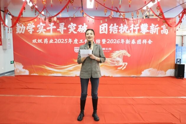 马踏祥来启新岁,凝心聚力赴华章!在新春佳节即将来临之际,双蚁药业2025年度工作总结暨2026年新春团拜会在公司外包车间隆重举行。全体双蚁人欢聚一堂、共叙情谊,一同回望2025年的耕耘与收获、挑战与成长,总结过往经验、谋划未来蓝图,共庆团圆祥和、喜乐安康的新春佳节,共赴属于双蚁药业的全新征程!